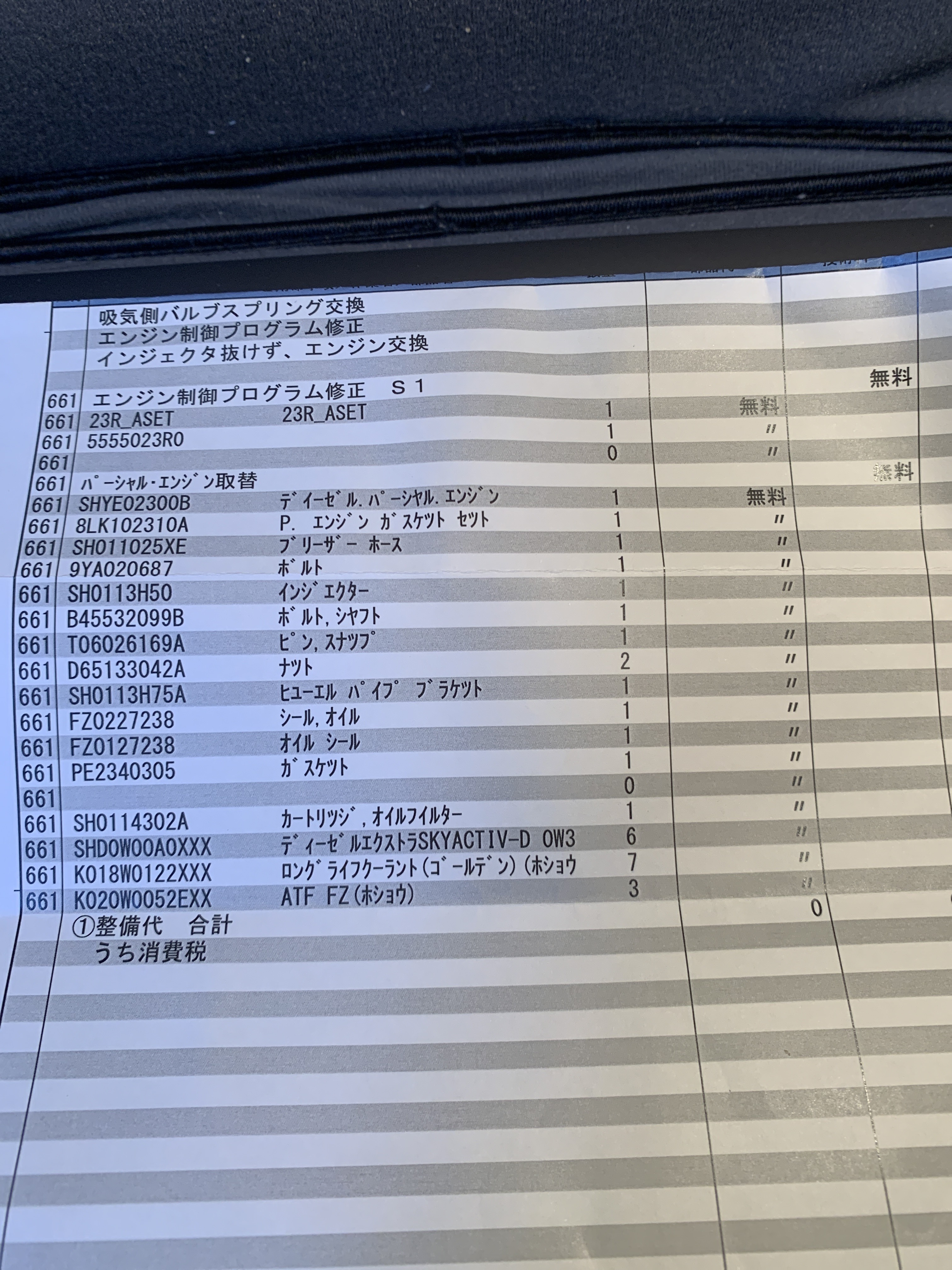 やっと帰ってきたウチのcx-5 さんやっぱりかっこいいなー(⌒▽⌒)明細表を見たら、ホントにエンジン交換してるー^ ^